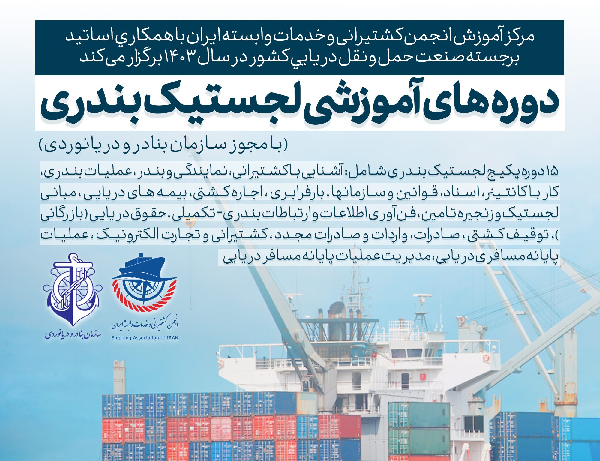 مرکز آموزش انجمن کشتیرانی و خدمات وابسته ایران با همكاري اساتيد برجسته صنعت حمل و نقل دريايي كشور در سال 1403 برگزار می کند