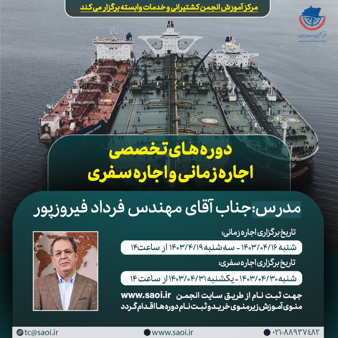 مرکز آموزش انجمن کشتیرانی و خدمات وابسته ایران دوره های تخصصی اجاره زمانی و اجاره سفری برگزار می کند