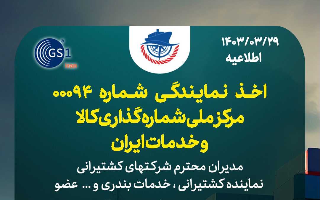 از این رو به استحضار می رساند نظر به تغيير رويه هاي مالي و مالياتي حاصل از الزام قانون پايانه هاي فروشگاهي و سامانه موديان ، همچنين مخاطرات و جرايم حاصل از عدم توجه به مفاد اجرايي آن و از آنجا كه يكي از مهمترين دغدغه هاي اركان مديريتي انجمن موضوعات مالي و مشكلات مالياتي اعضا محترم بوده است، همواره سعي داشته تا راهبردهاي حفظ و صيانت از حقوق اعضاء مورد توجه و در اولويت اول واقع گردد ، در همين راستا به استحضار كليه اعضاء محترم مي رساند تشكل ملي كشتيراني ايران به عنوان نخستين انجمن پيشرو در تسهيل فضاي كسب و كار در سطح كشور موفق به اخذ نمايندگي صدور شناسه كالا و خدمات از مركز ملي شماره گذاري كالا و خدمات ايران به شماره نمايندگي 00094 گرديده است.