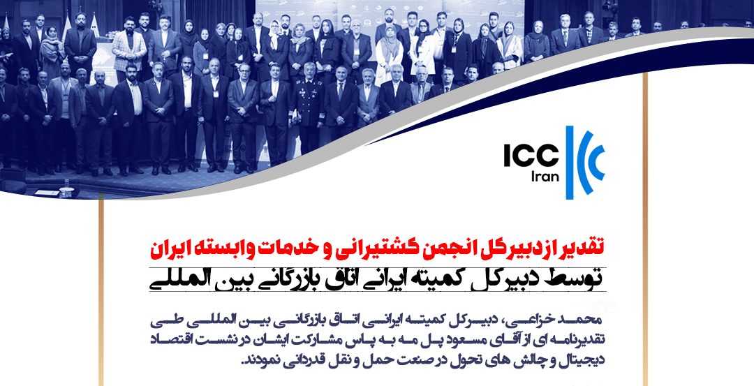 محمد خزاعی، دبیرکل کمیته ایرانی اتاق بازرگانی بین المللی طی تقدیرنامه ای از آقای مسعود پل مه به پاس مشارکت ایشان در نشست اقتصاد دیجیتال و چالش های تحول در صنعت حمل و نقل قدردانی نمودند.